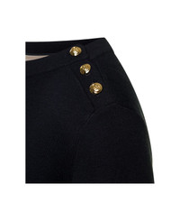 Black Sweater With Boat Neckline And Golden Logo Buttons In Cashmere Woman
