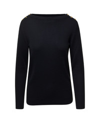 Sweater Boat neckline Golden buttons on the shoulders Long sleeves Ribbed hem Black Cashmere Regular fit Composition: 100% Cashmere Made in: Italy Color: Black Model number: 717544XKCNZ1000
