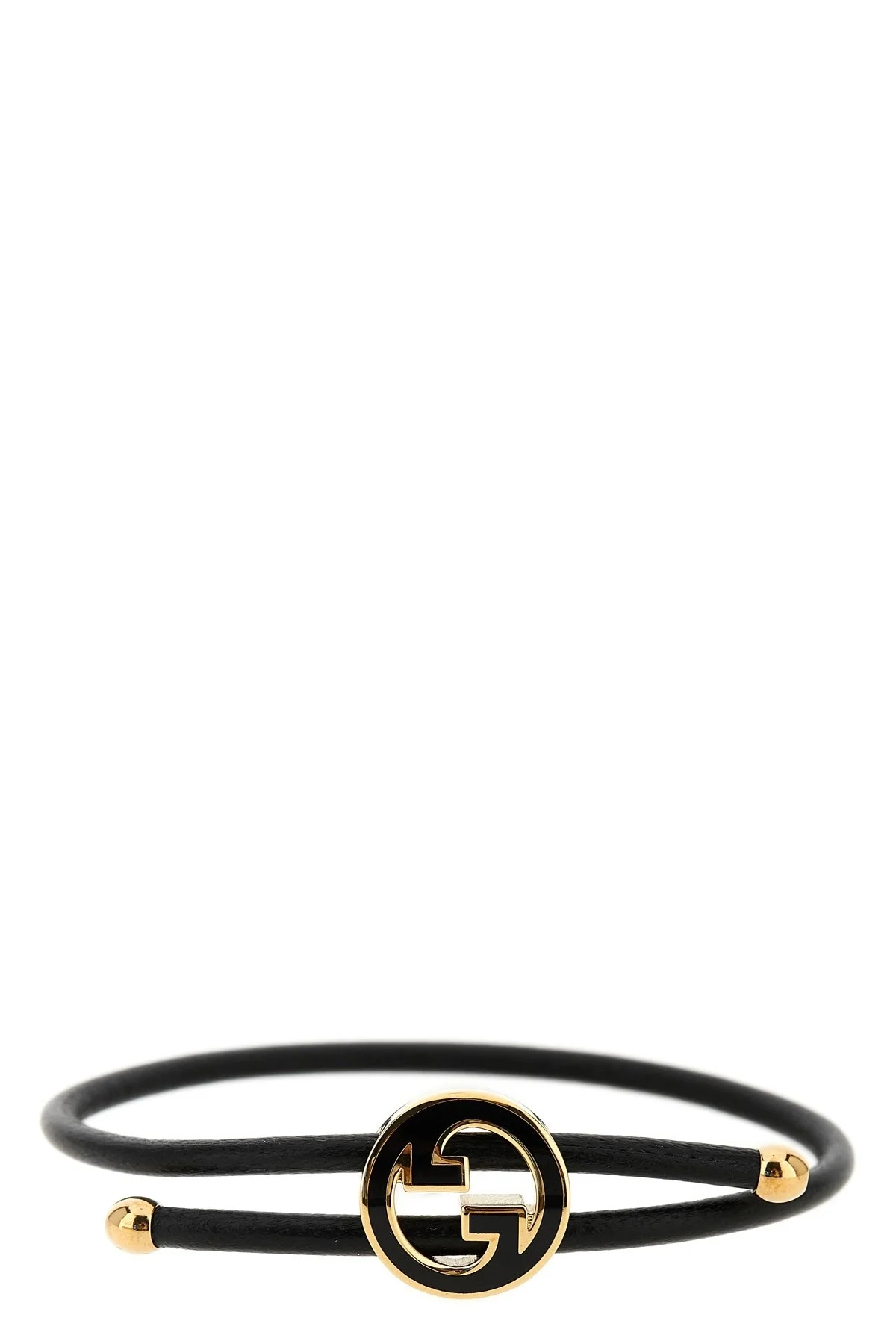 cod. 837355IAAF18523 Tubular 'Blondie' leather bracelet, tone-on-tone enamelled detail with engraved GG Tondo crossing, adjustable sliding closure. Color: Black Composition: 100% leather Made in: Italy