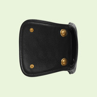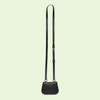Coming from the House's archives, a geometrically shaped version of the Interlocking G logo is reintroduced for Gucci Love Parade. Crafted from black leather, this card case wallet is enhanced with an adjustable strap, allowing it to be paired and styled in different ways. The versatile nature of the design adds a contemporary note to the archival hardware's vintage aesthetic. - Black leather - Gold-toned hardware - Leather lining - Round Interlocking G - Adjustable shoulder strap with 17.3" drop - Snap button closure - 4.5"W x 3.5"H x 1.2"D - Made in Italy