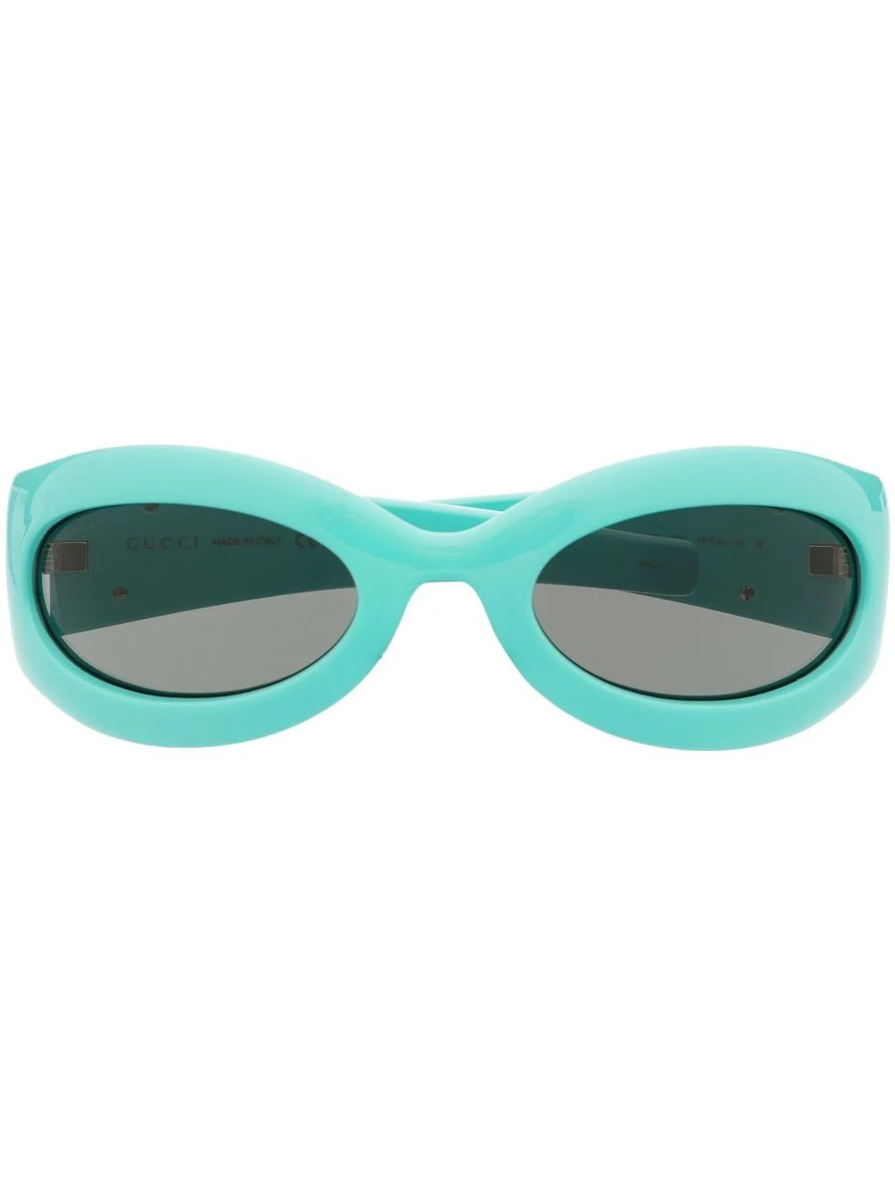 Blondie geometric-frame sunglasses turquoise acetate geometric frame tinted lenses UV-protective lenses signature Interlocking G logo plaque straight arms straight tips These glasses come with a protective case. Made in Italy Composition Acetate 100% SIZE & FIT Measurement Arm Length 4.33 in(11 cm) Bridge Width 0.98 in(2.5 cm) Lens Diameter 2.36 in(6 cm) Total Width 5.7 in(14.5 cm)