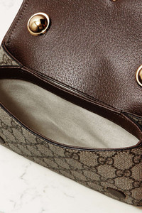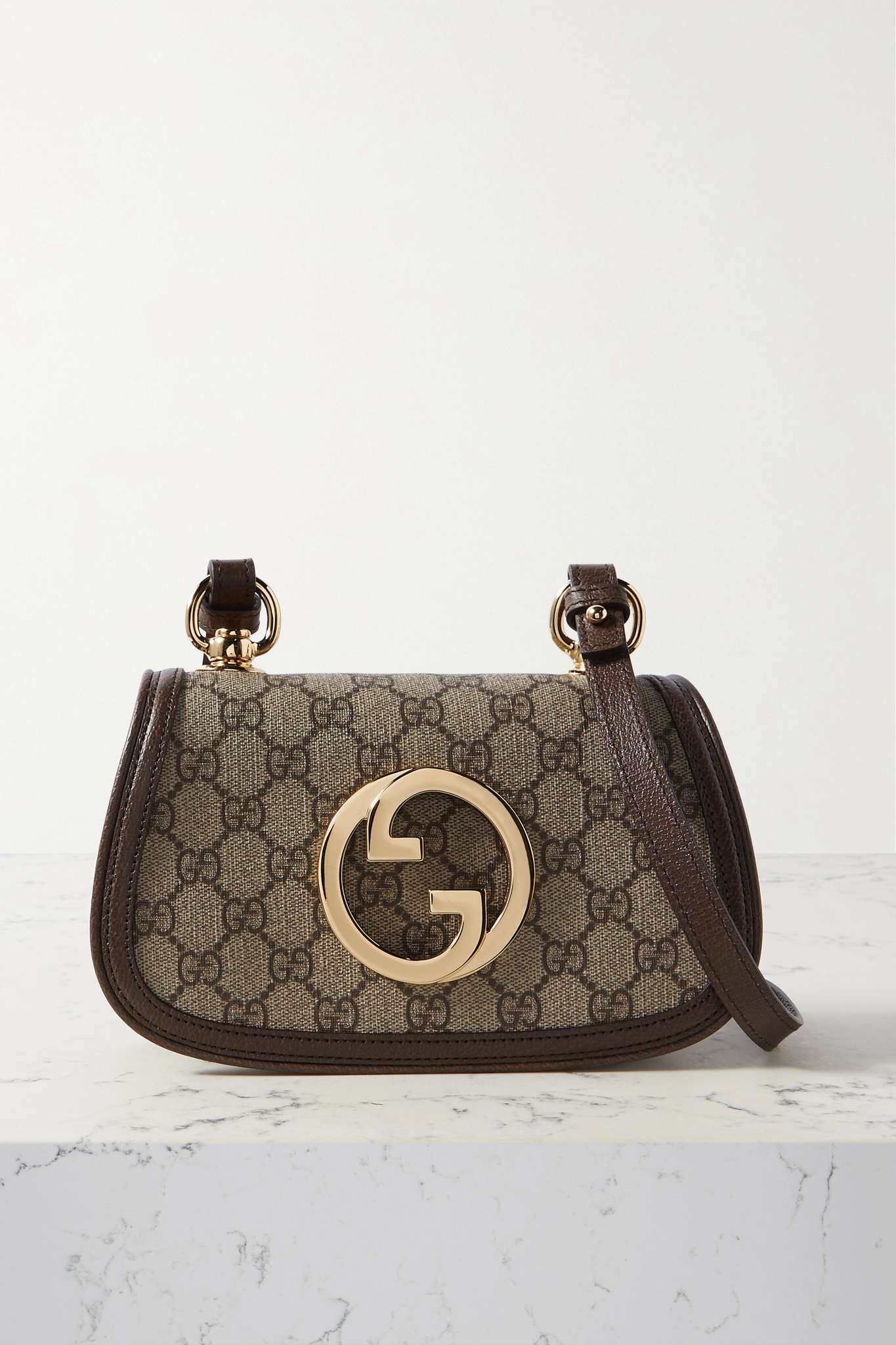 EDITORS'NOTES Gucci’s 'Blondie' bag was resurrected from the brand's archives for its 'Love Parade' collection, alongside the 'GG' circle logo plaque that sits at the center in gleaming gold-tone hardware. This leather-trimmed iteration is made from the house's iconic monogrammed coated-canvas and opens up to a dual compartment with a zip pocket for your cards or keys. SIZE & FIT This item’s measurements are: - Min. Strap Length: 105cm / 41.3in - Depth: 7cm / 2.8in - Max. Strap Length: 115cm / 45.3in - Height: 13cm / 5.1in - Width: 21cm / 8.3in DETAILS & CARE - Beige and dark-brown coated-canvas, brown textured-leather (Calf) - Magnetic-fastening front flap - Comes with dust bag