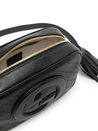 small Blondie leather crossbody bag Highlights - Black - Calf leather - Smooth grain - Gold-tone hardware - Signature interlocking g logo - Logo patch to the front - Tassel detail - Decorative stitching - Top zip fastening - Single top handle - Adjustable shoulder strap - Main compartment - Internal slip pocket - Internal logo patch - Full lining - This piece comes complete with a protective dust bag. Made in Italy Composition Outer: Calf Leather 100% SIZE & FIT Model measurements Height 5 ft 10 in(1.78 m) Bust/Chest 31.49 in(80 cm) Hips 37 in(94 cm) Waist 23.62 in(60 cm) Measurement DEPTH 2.75 in(7 cm) HEIGHT 5.9 in(15 cm) WIDTH 7.87 in(20 cm)
