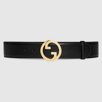 The Gucci Love Parade unfolded along the iconic Hollywood Boulevard. Self-expression defined the collection, a reflection of Los Angeles itself and its embrace of the idea that there are no rules when it comes to dressing up. Playing with this theme, the accessories and pieces of ready-to-wear continue to reimagine and reintroduce heritage details. With a wide silhouette, this black leather belt is distinguished by an archival iteration of the House's monogram hardware. - Black leather - Gold-toned hardware - Round Interlocking G buckle - 2" width - Made in Italy