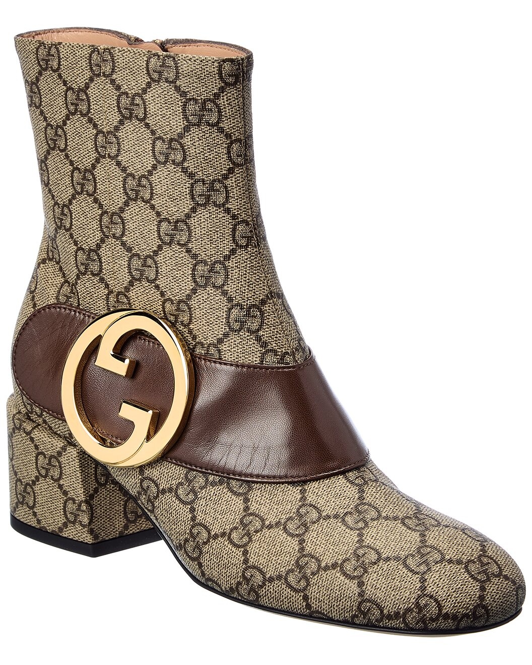 - About the brand: Eclectic and coveted. Italian luxury redefined. - Size selections are European - Made in Italy - Blondie Canvas & Leather Ankle Boot in brown canvas & leather and gold-tone hardware with GG hardware - Zipper closure - Smooth leather sole - 2.1in heel - 6in shaft - 9.8in boot circumference - Please note: All measurements are approximate and were taken from a size 37; slight variations may occur. - Our products are 100% genuine. In some cases we purchase merchandise from trusted independent suppliers and not directly from the brand owner. In all cases we stand by the authenticity of every product sold on our site.