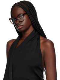 Cat-eye tortoiseshell acetate-frame optical glasses in brown. · Integrated nose pads · Logo hardware at face · Exposed core wire at arms · Includes pouch · Size: 55.16 140 Supplier color: Havana Acetate. Made in Italy 252451F004006