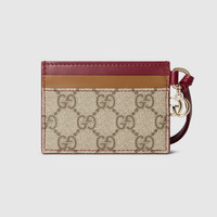 The Fall Winter 2025 collection introduces accessories that speak to the House's signature themes. This card case highlights the emblematic GG Supreme through new shapes and colours. - Beige and dark brown GG Supreme - Red, light and dark brown leather trim - Light gold-toned hardware - Dog detail - Double G - Leather strap - Inside: 1 open Compartment, 4 card slots - 3.9"W x 2.8"H