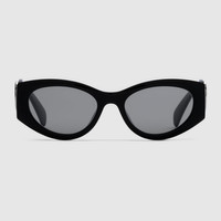 For the Pre-Fall 2024 collection, archival elements are reinterpreted with a contemporary touch. Here, a black cat-eye injection frame is decorated with an Interlocking G cut-out detail on the temples. - Shiny black injection frame - Shiny black injection temples with Interlocking G cut-out detail - Solid grey lens - 100% UVA/UVB protection - GG1691S - Temple length: 5.7"; Lens height: 1.5", Nose bridge length: 0.7" - Frame height 1.8"; Frame width 5.6" - Made in Japan - The glasses will arrive in a velvet case, available in a range of six jewel-toned colors, and paired with a coordinating satin lining. The case color will be individually selected for each pair of glasses, and comes with a matching satin flannel pouch and ivory microfiber cloth.