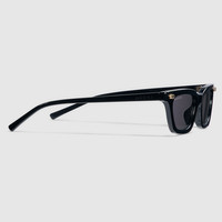 The Pre-Fall 2025 eyewear collection successfully combines the coveted silhouettes of bygone decades with a contemporary logo feel. Here, a black acetate frame pairs with an Interlocking G motif and an engraved Gucci logo. - Shiny black acetate frames with Interlocking G detail - Shiny black acetate temples with engraved Gucci logo - Solid grey lens - 100% UVA/UVB protection - GG1944S - Temple length: 5.5"; Lens height: 1.1", Nose bridge length: 0.7" - Frame height: 1.4"; Frame width: 5.6"; Hinge to hinge: 5.1" - The glasses will arrive in a velvet case, available in a range of six jewel-toned colors and paired with a coordinating satin lining. The case color will be individually selected for each pair of glasses and comes with a matching satin flannel pouch and ivory microfiber cloth.