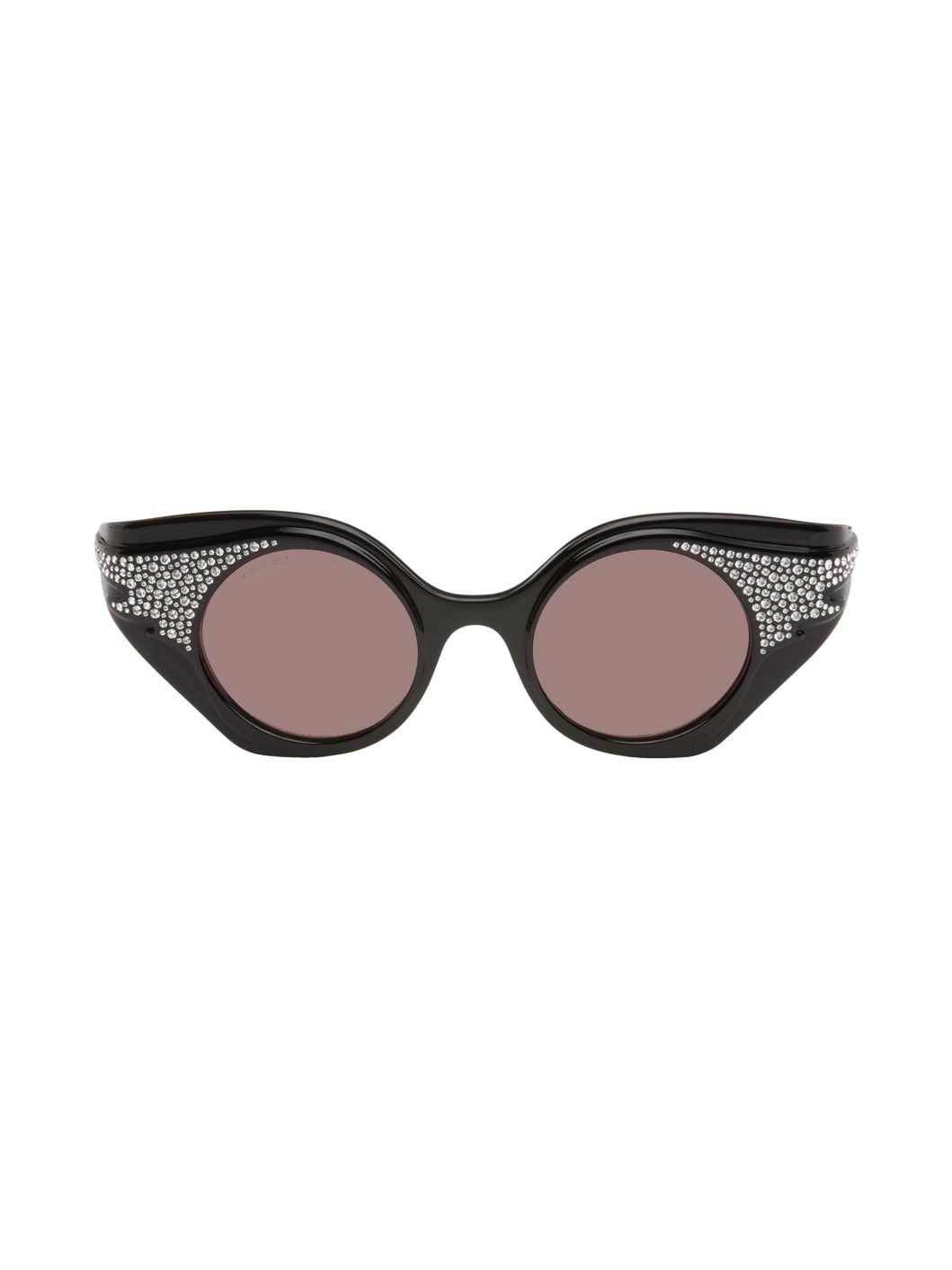 Cat-eye acetate-frame sunglasses in black. Crystal-cut detailing throughout. · Logo engraved at purple lenses · 100% UVA/UVB protection · Integrated nose pads · Logo engraved at temples · Metal arms in gold-tone · Velvet pouch included · Size: 45.21 120 Supplier color: Black/Gold/Brown