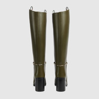 Featuring a slim Horsebit detail and paying homage to the House's rich equestrian heritage, these boots are crafted in supple and smooth leather. The classic silhouette is sophisticated and perfectly narrates the Gucci elegance. - Dark green leather - Silver-toned hardware - Slim Horsebit - Web puller tag - Leather sole - Mid-heel - Height: 3.3" - Made in Italy