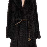 Introducing Spring Summer 2026. This style is featured in the "Milanesa" look of La Famiglia. The new chain belt features the same Double G detail as the fashion jewelry design, a tribute to the House's creativity and craftsmanship. - Gold-toned brass - Double G charm - Double chain - Rounded links - Clasp closure - Made in Italy - Can be worn as a hip or waist belt. Sizing will differ based on where the belt is worn, please refer to the size guide to find your size.