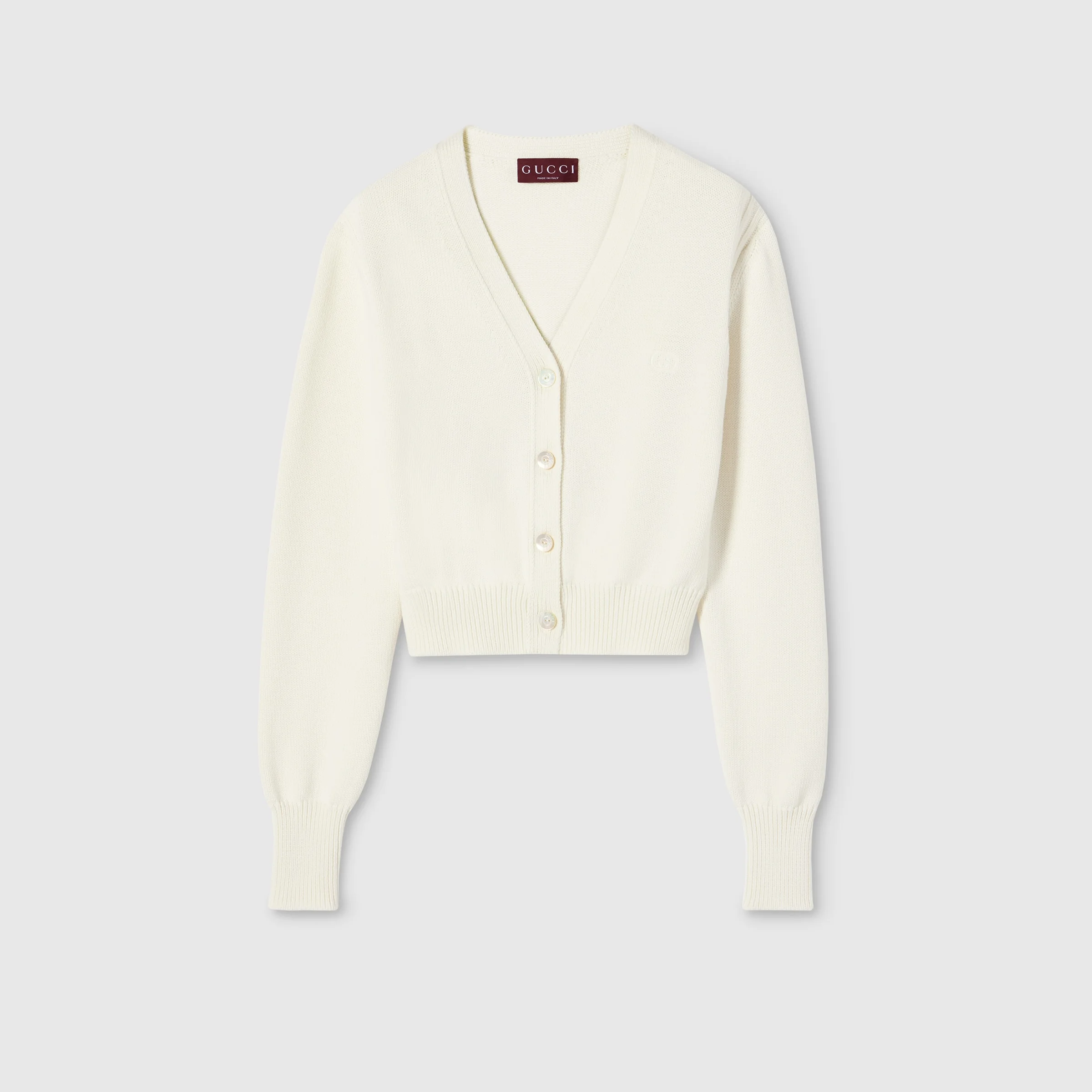 In the Cruise 2026 collection, women's ready-to-wear pieces celebrate the Gucci wardrobe, blending archival influence with the history of Florence in a playful melange, ranging from the minimal to the maximal. Crafted from cotton, this cardigan is enriched with an Interlocking G embroidery. - White cotton - Interlocking G embroidery - V-neck - Rib trim - Long sleeves - Front button closure - Length: 18.9" based on a size S - Made in Italy - Fabric: 100% Cotton - Embroidery: 100% Polyester