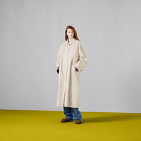 A relaxed attitude speaks volume as oversize pieces become an indispensable part of the wardrobe. Drop shoulder, extended sleeves and hems are key to the overall look, from formal pieces such as full-length coats and pants, to trench coats and sweatshirts. Crafted from a cotton gabardine, this trench coat reveals a leather trim and is defined by a tonal belt. - Off white cotton gabardine - Leather trim - Lined - Point collar - Raglan sleeves - Detachable and adjustable belt - Two side pockets - Button closure - Length: 49.2" based on a size 40 (IT) - Made in Italy - The product shown in this image is a size 40 (IT)