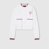 Equestrian symbols embellish signature silhouettes with a vibrant touch. Crafted from cotton jersey, this cardigan is defined by a Web Interlocking G and stirrup embroidery. - White cotton jersey - Web Interlocking G and stirrup embroidery - Crerwneck - Front pockets - Striped rib cuffs - Rib trim - Front button closure - Length: 20" based on a size S - Fabric: 89% Cotton, 11% Polyamide - Trimming: 100% Cotton - Embroidery: 100% Polyester
