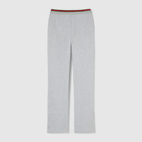 Sportswear-inspired pieces are elevated with the Web detail. The pieces balance comfort and statement, complete with signature house codes. Crafted from cotton jersey, these leisure pants are completed with a Web trim. - Light grey cotton jersey - Web trim - Elastic waistband with drawstring - Button ankle cuffs - Length: 43.7" based on a size S