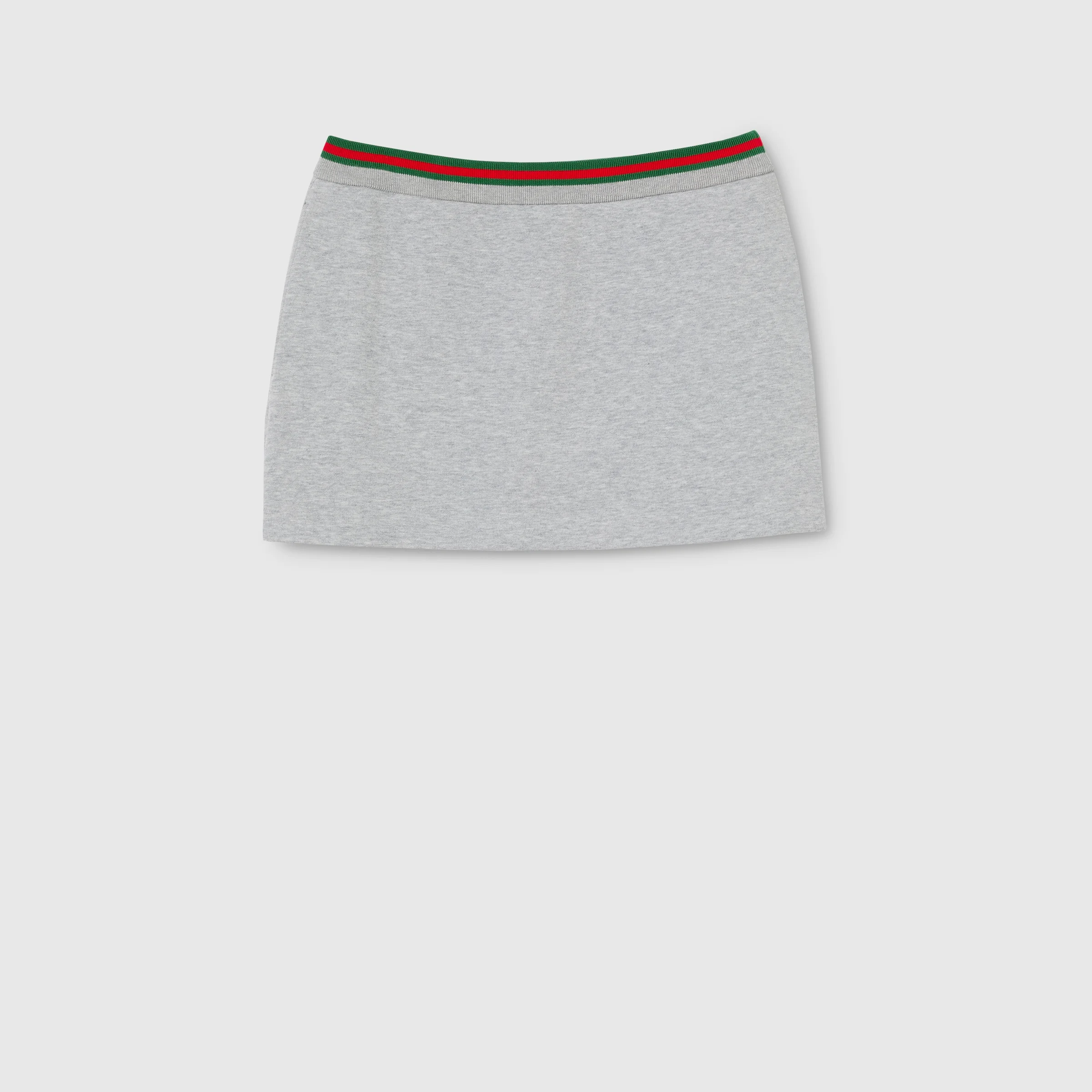 Sportswear-inspired pieces are elevated with the Web detail. The pieces balance comfort and statement, complete with signature house codes. Crafted from cotton jersey, this skirt is completed with a Web trim. - Light grey cotton jersey - Web trim - Elastic waistband - Length: 14.1" based on a size S