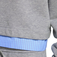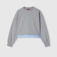 Perfect for the seaside, maritime-inspired designs enrich casual silhouettes with stripes, lightweight materials, and signature motifs in the Pre-Fall 2025 collection. This jersey sweatshirt is elevated with a blue striped cotton trim and Gucci embroidery. - Light grey cotton jersey - Blue striped cotton trim - Gucci embroidery - Crewneck - Long sleeves - Rib trim - Made in Italy
