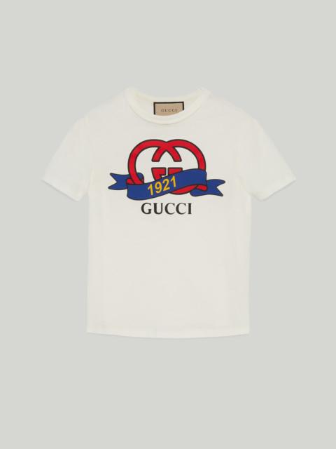 A relaxed attitude speaks volume as elevated pieces become an indispensable part of the wardrobe. This straight-cut T-shirt is presented in a black cotton jersey. - Black cotton jersey - Rib trim - Crystal G - Crewneck - Crystal Interlocking G embroidery - Short sleeves - Length: 21.2" based on a size extra small - Made in Italy - The product shown in this image is a size extra small