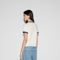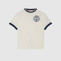 Sporty yet retro, Gucci's interpretation of activewear comes through in its Interlocking G logo in the new collection. The subtle motif, with just a touch of nostalgic inspiration, adorns this cotton jersey T-shirt, channelling a refined aesthetic. - Off white cotton jersey - Interlocking G Gucci 1921 embroidery - Crewneck - Short sleeves - Rib trim - Made in Italy - The model is 5'9" and is wearing size extra small