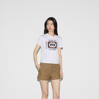 Inspired by the summer spirit and beach clubs on the Italian coast, this item is part of Gucci Lido. Emblematic codes of the House and refined patterns are reinterpreted in contemporary ways for the Pre-Fall collection. This T-shirt is presented in white light cotton jersey and enriched with a Gucci Interlocking G print. - White lightweight cotton jersey - Gucci Interlocking G print - Crewneck - Short sleeves - Length: 21.2"; based on a size S - Made in Italy - The product shown in the image is a size small