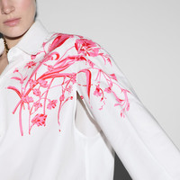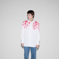 Inspired by the summer spirit and beach clubs on the Italian coast, this item is part of Gucci Lido. Inspired by the summer spirit and beach clubs on the Italian coast, this item is part of Gucci Lido. This shirt comes to life with a delicate Gucci flowers and insects print. A detachable contrasting point collar offers versatility when it comes to styling. - White heavy cotton poplin - Self-covered buttons - Gucci flowers and insects print - Detachable point collar with tie front closure - Long sleeves - Button closure - Length: 32.6", based on a size 40 (IT) - Made in Italy - The product shown in the image is a size 40 (IT)