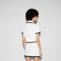 Inspired by the summer spirit and beach clubs on the Italian coast, this item is part of Gucci Lido. Emblematic codes of the House and refined patterns are reinterpreted in contemporary ways for the Pre-Fall collection. This boxy jacket is presented in an off-white cotton tweed and enriched with Round Interlocking G enameled buttons and a black trim. - Off-white cotton tweed - Black trim - Round Interlocking G enameled buttons - Blue jacquard Horsebit lining - Notch collar - Short sleeves - Two side pockets - Button closure - Cut for a boxy fit - Length: 18.5", based on a size 40 (IT) - Made in Italy - The product shown in the image is a size 40 (IT)