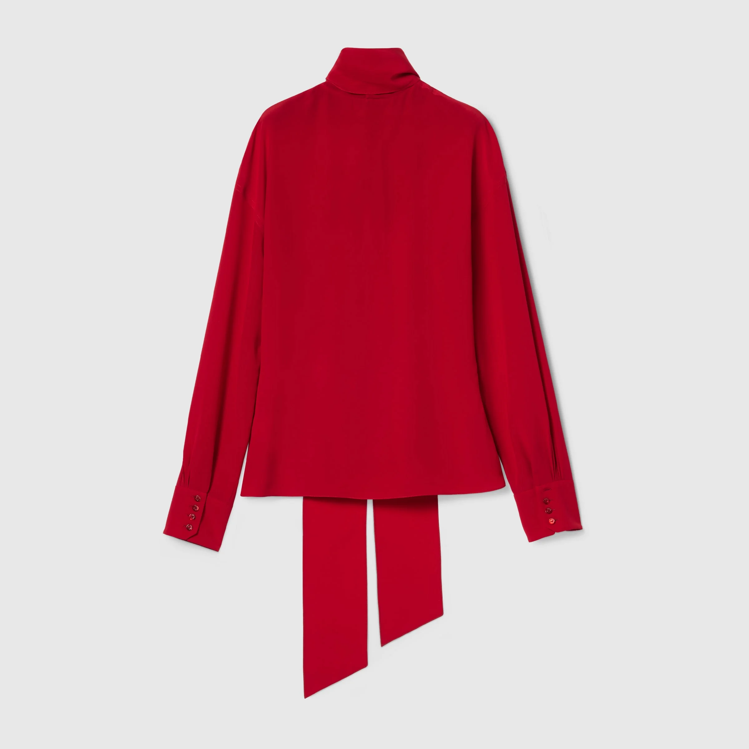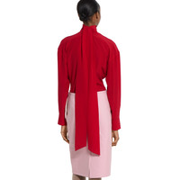 In the Fall Winter 2025 collection, this long-sleeved blouse is crafted from crepe de chine and defined by a scarf-tie neckline. The softly structured silhouette features dropped shoulders and buttoned cuffs. - Red silk crepe de chine - Self-tie neck bow - Long sleeves with buttoned cuffs - Made in Italy