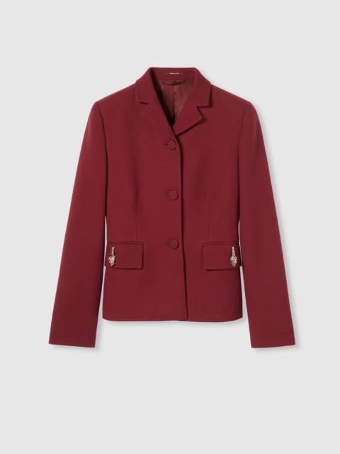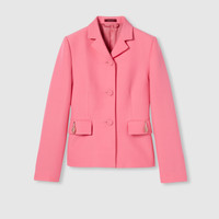 The Pre-fall 2025 collection introduces a new take on warm materials on sophisticated outerwear pieces, in traditional and contemporary silhouettes. This single-breasted jacket in cady crepe wool silk features the historic tiger head atop the two front pockets. - Pink cady crepe wool silk - Tiger head detail - Lined - Notch lapel - Single-breasted - Two flap pockets - Fitted waist - Button closure - Made in Italy