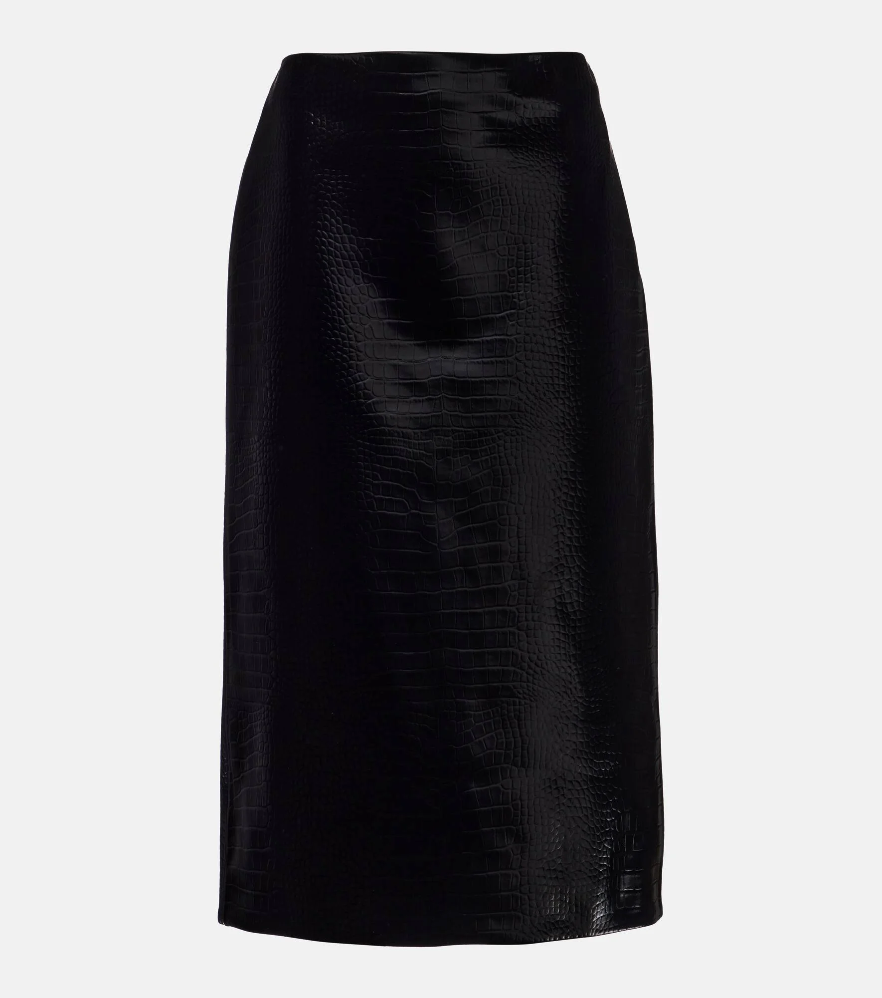 This skirt from Gucci is crafted from a velvety leather, complemented by a croc-effect finish. The pencil design is cut to a fitted silhouette and secured by concealed zip fastening on one side. Product Details - Material: 100% lamb leather - Care instructions: specialist clean - Made in Italy - Color: black - Designer color name: Black - Item color: black - Lining: 100% viscose - Trim: 100% polyester - Contains non-textile parts of animal origin - Closure: concealed zipped back - Hem: straight - Includes: dust bag - Item number: P01119193 Size & Fit - True to size - Non-stretchy fabric - High-waisted - slit length 49,6cm-19.5" - The model seen in the picture is 178cm-5'10" and wearing a size IT 40