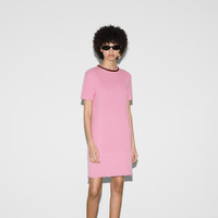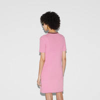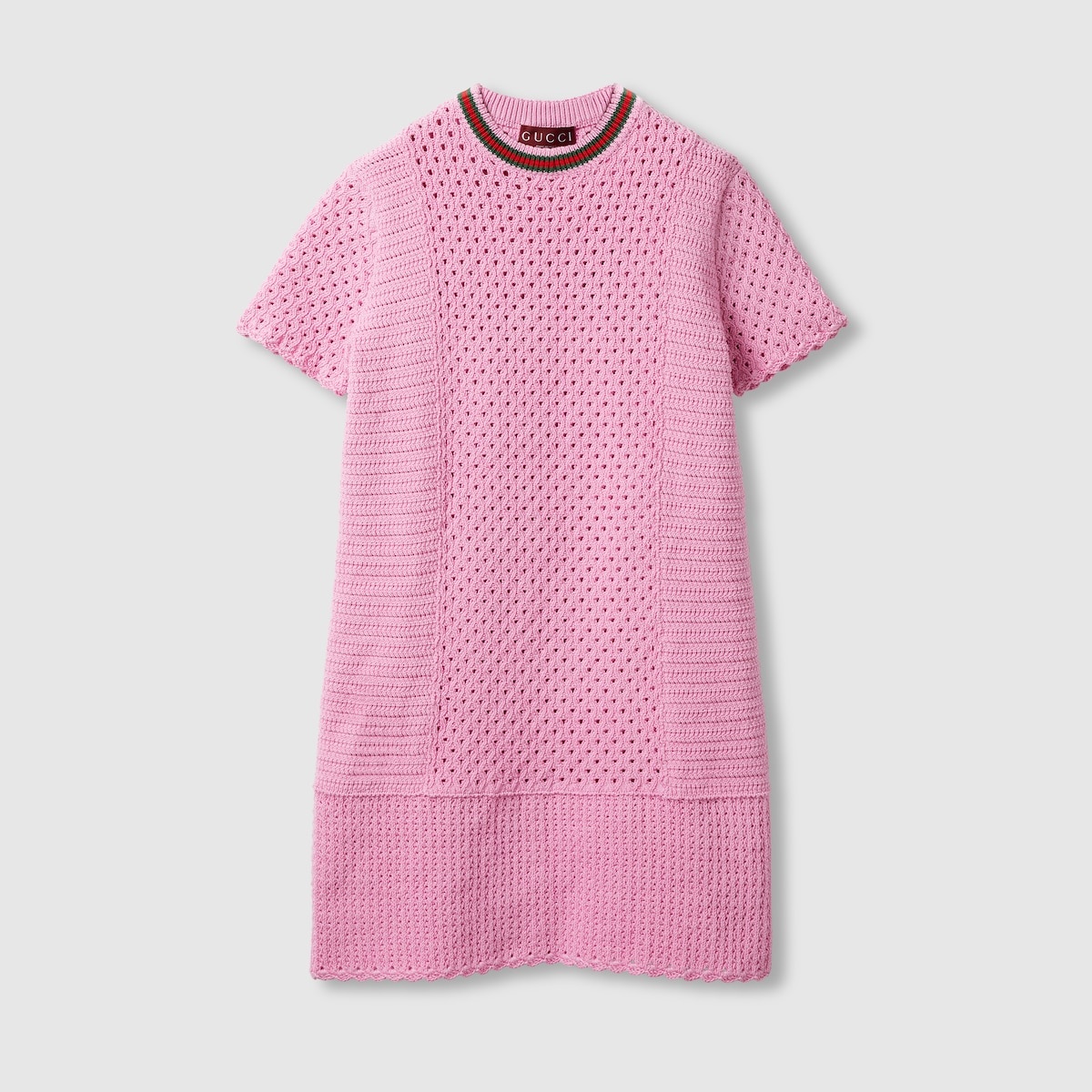 Inspired by the summer spirit and beach clubs on the Italian coast, this item is part of Gucci Lido. Inspired by the summer spirit and beach clubs on the Italian coast, this item is part of Gucci Lido. This boxy dress is made from a pink crochet-effect cotton and defined by a blue and red Web detail. A detachable slip dress lining offers increased versatility when it comes to styling. - Pink crochet-effect cotton - Blue and red Web - Detachable slip dress lining - Crewneck - Short sleeves - Rib trim - Length: 33.4", based on a size S - Made in Italy - The product shown in the image is a size small