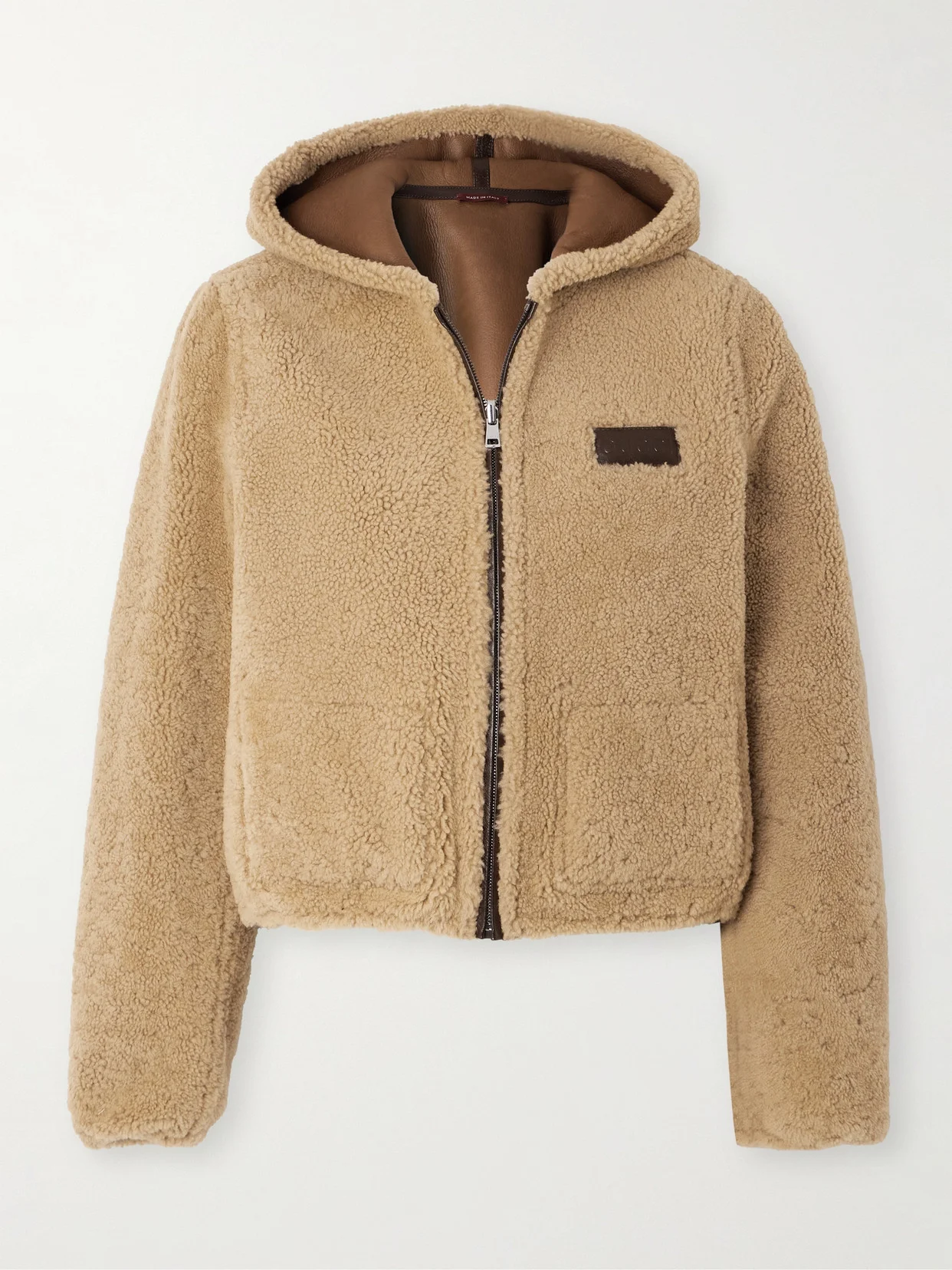 Gucci's jacket is a perfect way to stay cozy through those cool transitional months. Made from fluffy shearling, it has a generous hood for windy days and features a leather chest patch debossed with the brand's moniker.