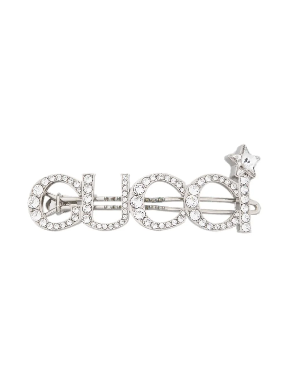 crystal-logo hair clip Highlights - Silver-tone - Palladium plated finish - Logo charm - Crystal embellishment - Clip fastening Made in Italy Composition Crystal 100%, Palladium Plated Brass 100% SIZE & FIT Measurement LENGTH 1.1 in(2.8 cm) WIDTH 2.95 in(7.5 cm)