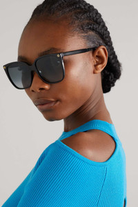EDITORS'NOTES Gucci Eyewear's sunglasses have been made in Italy from glossy black acetate in a square-frame silhouette with softer, rounded edges. Fitted with gray lenses, they're detailed with the label's 'GG' monogram as well as the iconic bee at the temple tip. SIZE & FIT - DETAILS & CARE - Black acetate - Come with a case - 100% UV protection