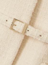 EDITORS'NOTES Gucci's jacket is tailored from cream boucle-tweed blended with plenty of wool for added texture. It has a plunging neckline and is detailed with logo buttons and a coordinating belt. Style yours with the matching skirt from our edit. SIZE & FIT Model measurements: - Fits true to size, take your normal size - Designed for a slim fit - Textured, non-stretchy fabric - Model is 180cm/ 5'11" and is wearing an IT 40 - Bust: 81cm/ 32" - Waist: 63cm/ 25" - Hip: 91cm/ 36" DETAILS & CARE - Ivory wool-blend boucle-tweed - Concealed snap fastenings through front - 84% wool, 16% polyamide; lining: 100% viscose - Dry clean