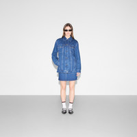 Gucci Denim Evolution is conceived by the House’s Circular Hub to reduce environmental impacts and minimize waste while enhancing craftsmanship and traceability. The collection is designed following Gucci’s circular guidelines using a denim material crafted from regenerative and recycled fibers. This structured jacket has been crafted from a washed denim and features a Gucci and Interlocking G shadow print on the reverse. - Blue washed denim - Gucci engraved metal buttons - Gucci and Interlocking G shadow print - Unlined - Point collar - Dropped shoulder - Two chest pockets - Two side pockets - Gucci jacron label - Shoulder drop: 19.2 " based on a size 40 (IT) - Chest: 21.4 " based on a size 40 (IT) - Sleeves length: 23.8 " based on a size 40 (IT) - Button closure - Regular fit - Length: 28.3 " based on a size 40 (IT) - Made in Italy - The product shown in this image is a size 40 (IT)