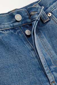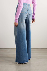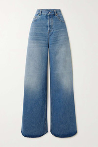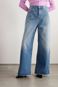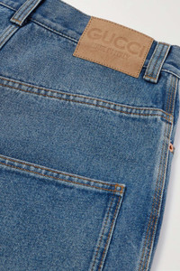 EDITORS'NOTES Gucci's jeans have a voluminous, wide-leg shape inspired by retro skater styles. They're cut from denim that's faded and frayed along the hems for a lived-in look. Show off the high waist and horsebit embellishment on the right pocket with a tucked-in tee. SIZE & FIT - Fits true to size, take your normal size - High-rise, cut for a wide-leg fit - Mid-weight, non-stretchy fabric - Size 27 jeans have an inside leg of 32"/ 81cm - Model is 180cm/ 5'11" and is wearing a size 27 DETAILS & CARE - Blue denim - Button fastenings - 100% cotton - Machine wash
