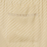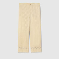 Lace is a recurring element of the Cruise 2026 collection, as one of the most feminine of materials. Crafted from diagonal GG silk jacquard, this pair of pants is defined by a delicate lace trim. - Light beige diagonal GG silk jacquard - Lace trim - Unlined - Side and back pockets - Button closure - Length: 36.2"; Leg opening: 20.4", based on a size 40 (IT)