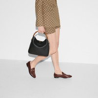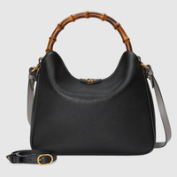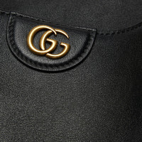 Combining recognizable elements of the House, the small shoulder bag is defined by its bamboo handles and Double G hardware. Crafted from black leather, the accessory is further accentuated a contrasting leather shoulder strap in grey. - Black leather - Grey leather trim - Gold-toned hardware - Microfiber suede-effect lining - Double G - This item comes with an additional leather shoulder strap - Inside: 1 zip pocket - Bamboo top handle with 5.1" drop - Adjustable leather shoulder strap with 20.4" drop - Magnetic closure - Medium size: 11.8"W x 9"H x 2.5"D - Made in Italy - The model is 5'9" tall - Fits up to: iPhone Pro Max/Plus, Airpods, long wallet, and lipstick