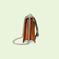 With inspirations from the world of ancient mythology, the textured tiger head defines the Dionysus. The accessory appeared for the first time during one of the Creative Director's earliest fashion shows and soon became a recognizable emblem of the brand. - Brown leather - Antique silver-toned hardware - Pin closure with side release - Hand-painted edges - Tiger head closure - Interior zipped compartment - Pocket under the flap - Double gussets - Sliding chain strap can be worn as a shoulder strap with 38cm drop or can be worn as a top handle with 22cm drop. - Weight: .6kg approximately - Small size: 11"W x 7"H x 3.5"D - Made in Italy - Fits up to: iPhone Pro Max/Plus, Airpods, long wallet, and lipstick
