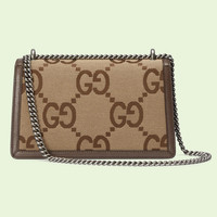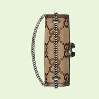 Marking the House’s first in-person fashion show since February 2020, Gucci Love Parade unfolded along Los Angeles' walk of fame. Inspired by the timeless nature of old-Hollywood glamour, the collection presents contemporary takes on traditional pieces. This Dionysus small shoulder bag is presented in GG canvas - a reimagination of Guccio Gucci's initials in a maxi size. - Camel and ebony jumbo GG canvas - Brown leather trim - Palladium-toned hardware - Cotton linen lining - Pin closure with side release - Hand-painted edges - Tiger head closure - Interior zipped compartment - Pocket under the flap - Double gussets - Sliding chain strap can be worn as a shoulder strap with 38cm drop or can be worn as a top handle with 22cm drop. - Weight: .6kg approximately - Small size: 11"W x 7"H x 3.5"D - Made in Italy