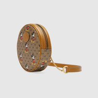 Mickey Mouse’s playful image defines this round GG canvas shoulder bag, trimmed with light brown leather details that convey a vintage look and feel. In celebration of the Lunar New Year, Disney’s legendary character appears throughout Gucci’s ready-to-wear and accessories for the Cruise 2020 collection, displayed as colorful prints, embroidered patches or jacquard motifs. - Disney x Gucci ©Disney - Beige/ebony mini GG Supreme canvas with Mickey Mouse and light brown leather trim - Antique gold-toned hardware - Leather Interlocking G tag - Internal leather tag with © Disney - Adjustable shoulder strap with 21.7" drop - Zipper closure - Mini size: 7.5"W x 7.5"H x 2"D - Cotton linen lining - Made in Italy - The model is 5'10" tall