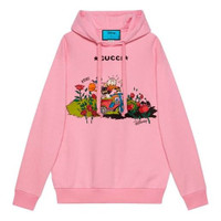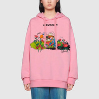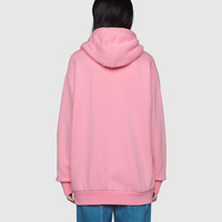 Imbued with a playful spirit, legendary Disney characters continue to enrich the House's narrative. Donald Duck adds a whimsical feel to signature shapes and designs. Here, his image is printed atop an oversize hooded sweatshirt, crafted from heavy cotton jersey. - Pink heavy felted cotton jersey - Donald Duck print © Disney - Gucci embroidery on the back - This product contains organic cotton where the cultivation and manufacturing process restrict the use of chemicals, eliminate pesticides or artificial fertilizers and incorporate methods that respect biodiversity, improve soil quality, and reduce water consumption. - Fixed hood - Adjustable drawstrings - Oversize fit - Length: 27", based on a size medium - Made in Italy - The product shown in this image is a size medium