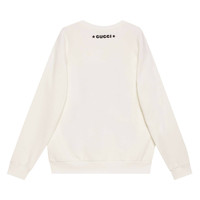 Imbued with a playful spirit, legendary Disney characters continue to enrich the House's narrative. Donald Duck adds a whimsical feel to signature shapes and designs. Here, his image is printed atop an crewneck sweatshirt, crafted from heavy cotton jersey. - White heavy felted cotton jersey - Donald Duck print © Disney - Gucci embroidery on the back - This product contains organic cotton where the cultivation and manufacturing process restrict the use of chemicals, eliminate pesticides or artificial fertilizers and incorporate methods that respect biodiversity, improve soil quality, and reduce water consumption. - Crewneck - Oversized fit - Length: 27", based on a size medium - Made in Italy - The model is 5'8" and is wearing size medium