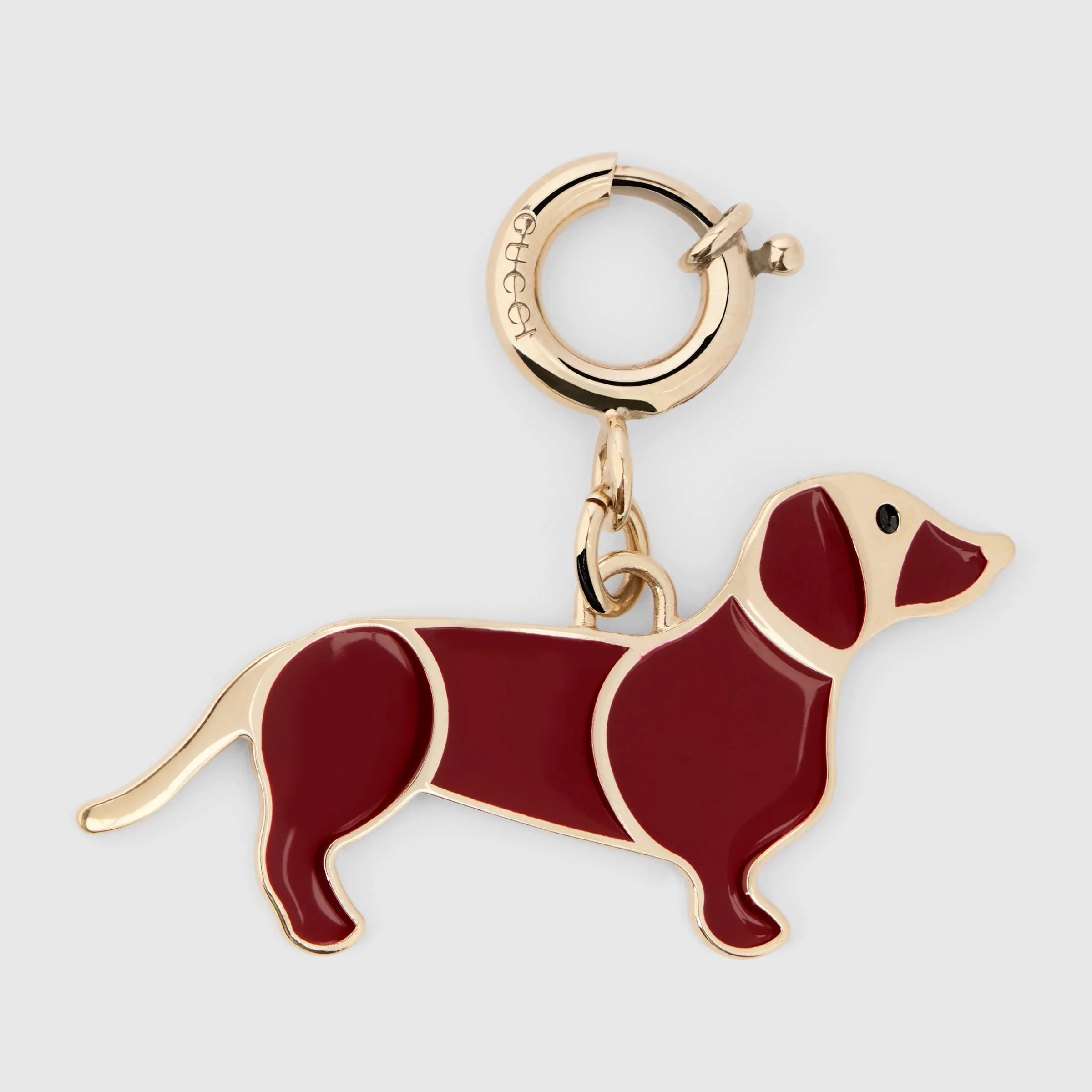 The Pre-Fall 2025 collection introduces accessories that speak to the House's signature themes. This bag charm reveals an enamel dog-shaped motif, bringing a playful touch to every look. - Gucci Rosso Ancora red enamel - Gold-toned hardware - Dog shape - Clasp closure - 2.3"W x 1.9"H - Weight: 0.02lb, approximately