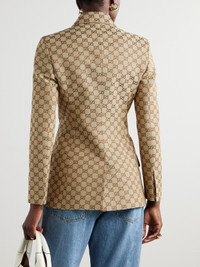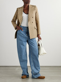 Gucci's blazer is made from cotton-blend canvas that's jacquard-woven with the signature 'GG' motif throughout. It has a double-breasted shape that cinches the waist and chic peak lapels. Wear yours with tonal tailoring or jeans.
