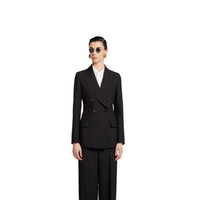 Sartorial silhouettes speak to the fine craftsmanship and sophisticated materials that have come to define Gucci's latest ready-to-wear. For Pre-Fall 2025 this classic double-breasted jacket is crafted from a unique pinstripe Gucci wool jacquard. - Black pinstripe Gucci wool jacquard - Lined - Notch lapel - Double-breasted - Breast pocket - Two flap pockets - Back vent - Button closure - Made in Italy