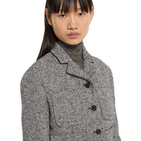 In the Fall Winter 2025 collection, utility codes are refined through precise cuts and compact proportions. This cropped jacket features a peak lapel, four front patch pockets with flaps and a button-up front. Half lined. - White and black double cotton-wool mouline - Gucci horn buttons - Half lined - Peak lapel - Four front patch pockets - Button closure - Length: 18.9"; based on size 38 IT - Made in Italy