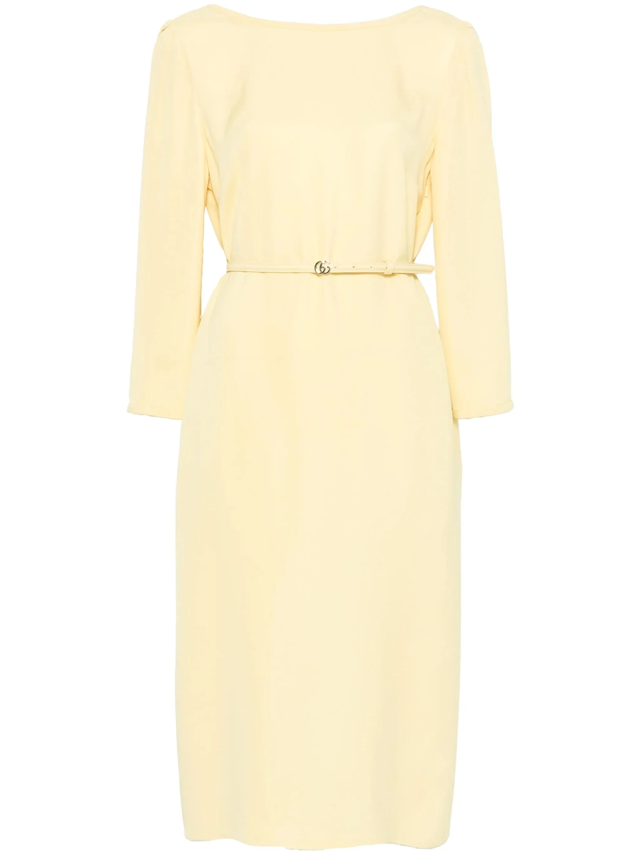 lemon yellow concealed side zip fastening detachable and adjustable waist belt draped panel detail scoop back - sleeve length: 51.0 centimetres, hips: 102.0 centimetres, length: 110.0 centimetres, waist: 90.0 centimetres - Color: YELLOW - Made in: Italy - Designer Style ID: 818246 Z8BYJ 7317 Composition and care Outer Composition Silk: 32.0%, Lining Composition Silk: 25.0%, Outer Composition Calf Leather: 100.0%, Lining Composition Acetate: 75.0%, Outer Composition Viscose: 68.0%