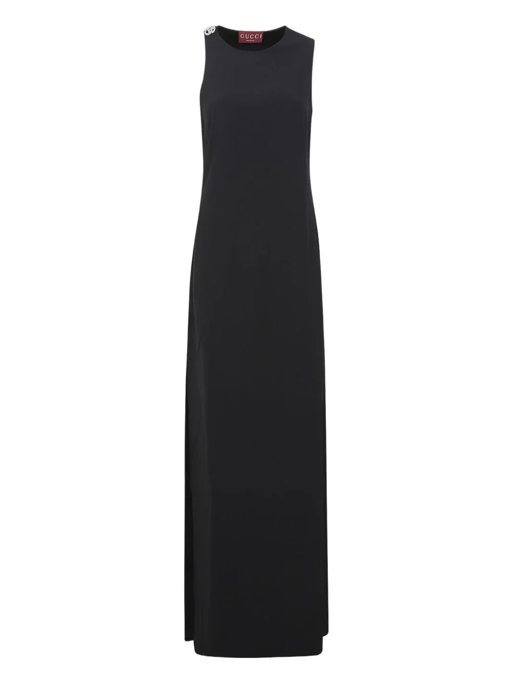 Double G-detail maxi dress Highlights - Black - Double g detail - Sleeveless - Crew neck - Cut-out detail on the back - Side zip closure Made in Italy Composition Acrylic 77%, Viscose 23% Washing instructions Read Manufacturer Guidelines